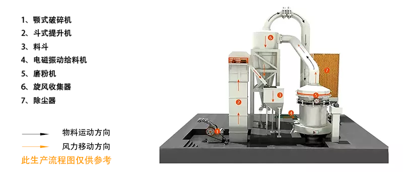 3、磨削:磨削階段是整條生產(chǎn)線的核心環(huán)節(jié)。根據(jù)成品的細(xì)度要求,可以選擇不同的研磨設(shè)備。粉末磨機(jī)利用磨輥將成品研磨成規(guī)定的粒度,然后進(jìn)入粉末分級(jí)機(jī)。合格的細(xì)粉隨著氣流流入旋風(fēng)粉收集器成為成品,大顆粒物料回落進(jìn)行再研磨。